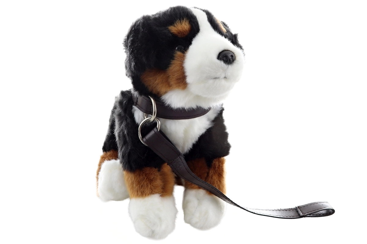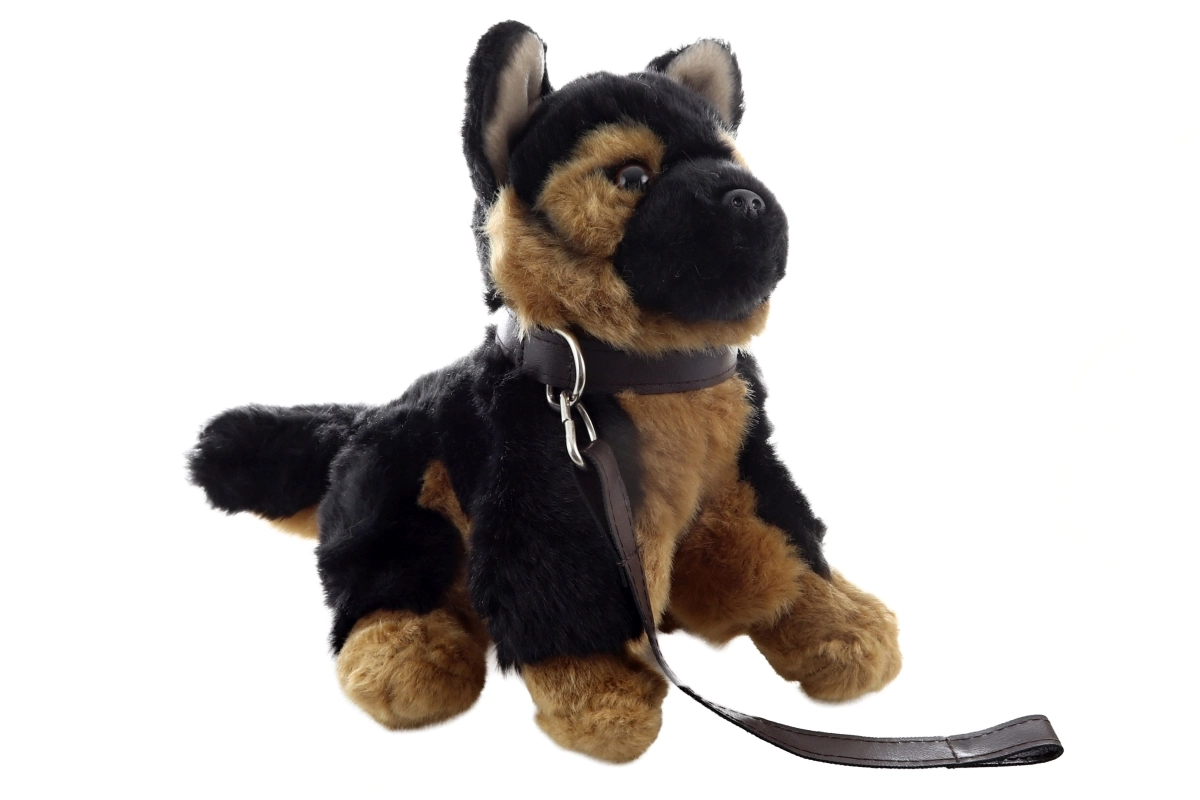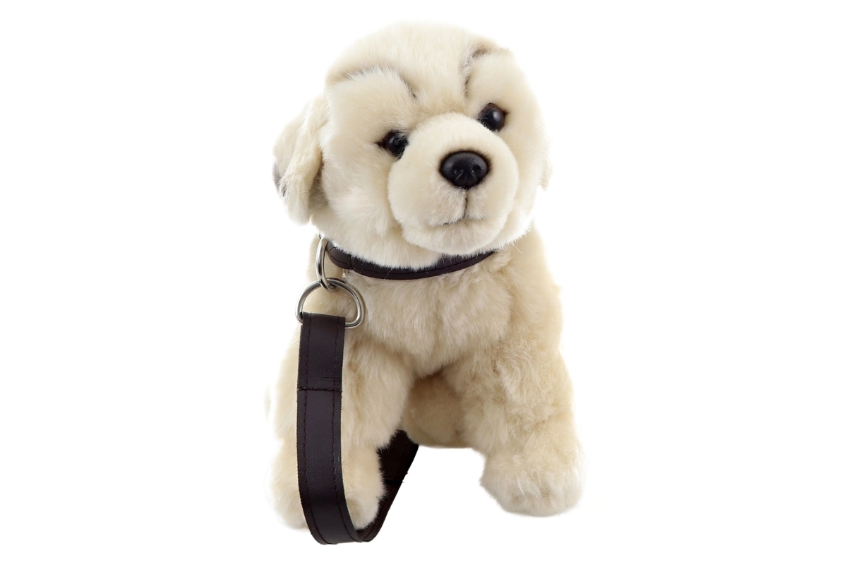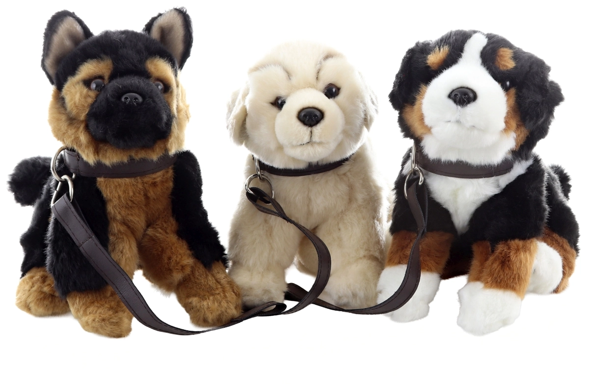 Ogni cagnolino presenta dettagli realistici (occhi e nasino ricamati), un piacevole peluche corto e un collare resistente con guinzaglio per giocare alla passeggiata. Selezioniamo tra 3 razze in base alla disponibilità attuale.