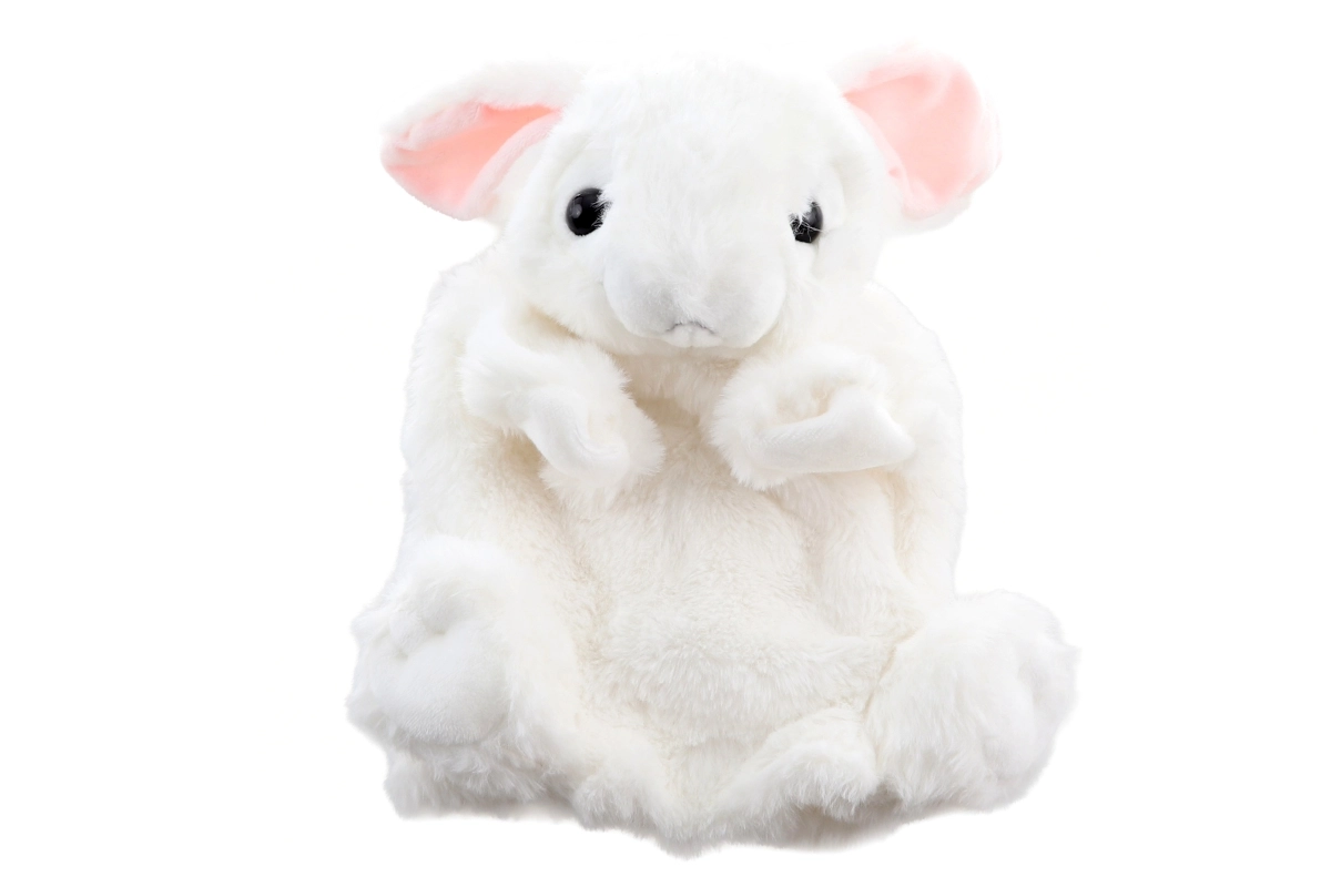 Questo soffice burattino a forma di coniglietto bianco con orecchiette rosa e occhietti espressivi stimola la fantasia e lo sviluppo del linguaggio. Grazie alla superficie piacevole e vaporosa è ideale per le coccole e per un primo teatrino, a casa o fuori.
