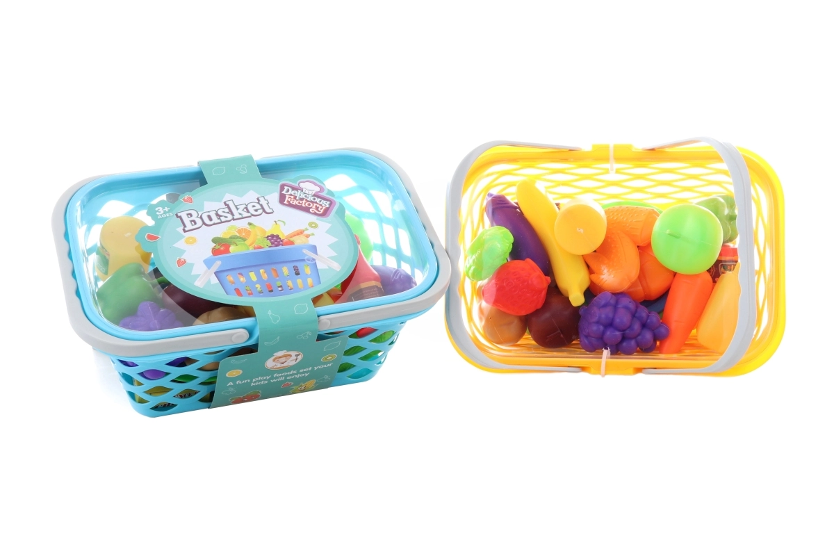 Set divertente per piccoli cuochi: cestino di plastica pieno di alimenti e accessori per giocare al negozio e alla cucina. Include frutta e verdura, condimenti, scatolina con caffè e succo, piattino e posate. Il cestino ha comode maniglie per un facile trasporto. Adatto a bambini dai 3 anni.