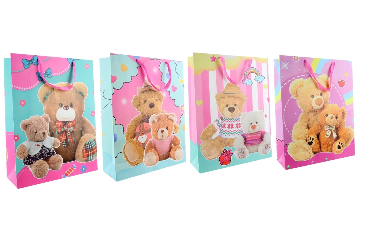 Questa borsa regalo enorme con orsetti è un’ottima scelta per confezionare regali più voluminosi. Il materiale in carta di qualità garantisce resistenza e affidabilità, mentre il motivo grazioso dona al regalo un aspetto affascinante.
