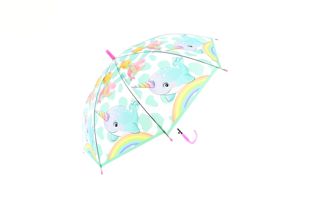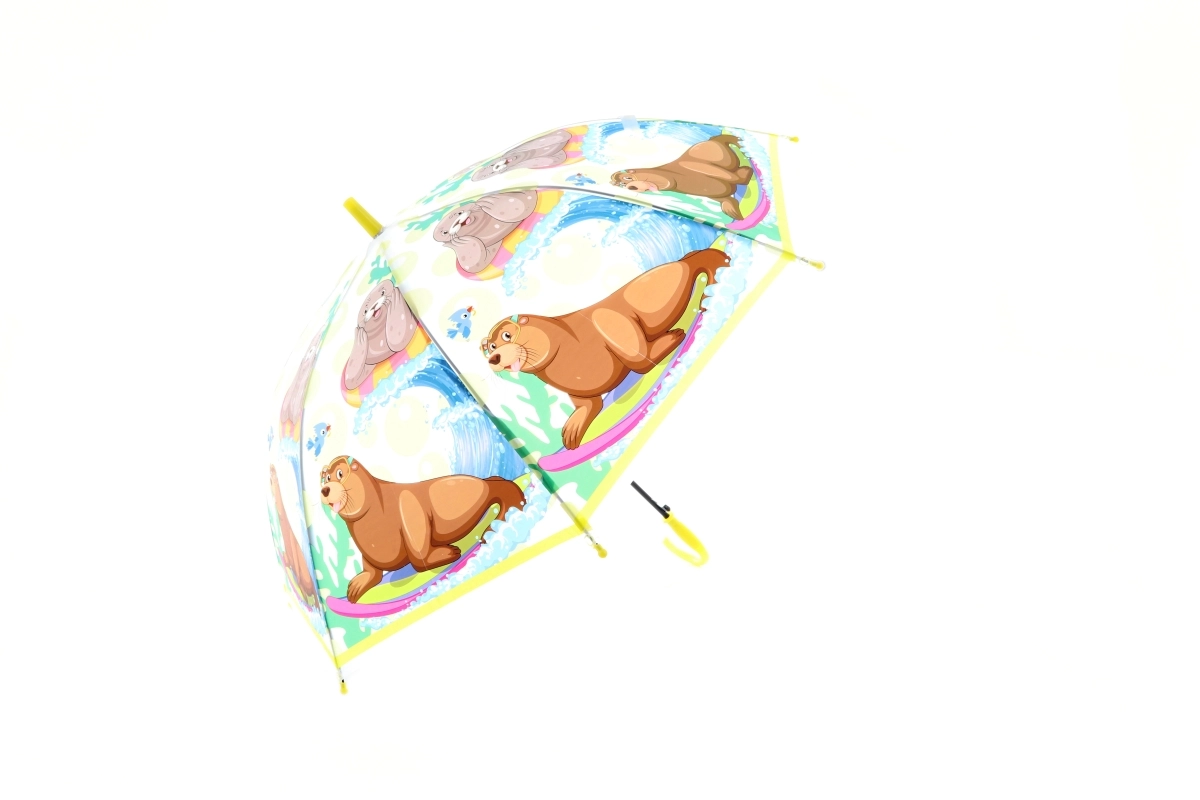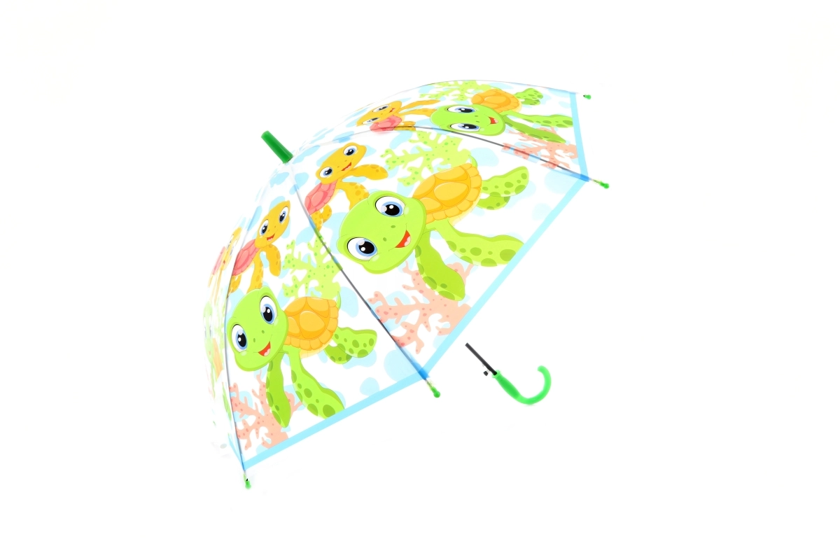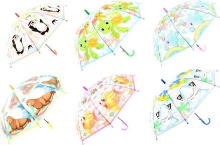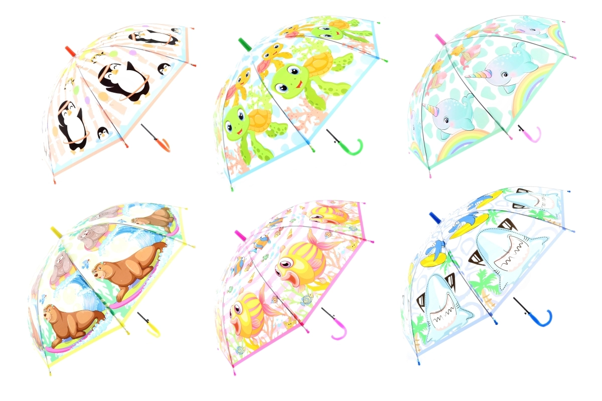 Illumina le giornate di pioggia con l'ombrello per bambini decorato con simpatici animaletti. Forma a cupola per una copertura migliore, pannelli trasparenti per una migliore visibilità e struttura leggera per un trasporto confortevole. Diametro 75 cm, lunghezza 60 cm. Vari motivi – spediamo in base alla disponibilità.