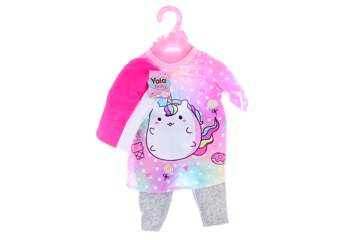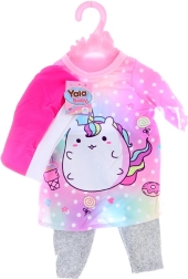 Un dolce set di abbigliamento per bambola che include pantaloni, maglietta e cuffietta. Perfetto per il gioco quotidiano e per cambiare gli outfit delle bambole. L’abbigliamento è fornito su gruccia in bustina, pronto all’uso e facile da riporre.