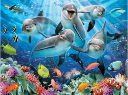 La superficie speciale crea profondità e movimento, facendo sembrare i delfini come se nuotassero proprio davanti a te.