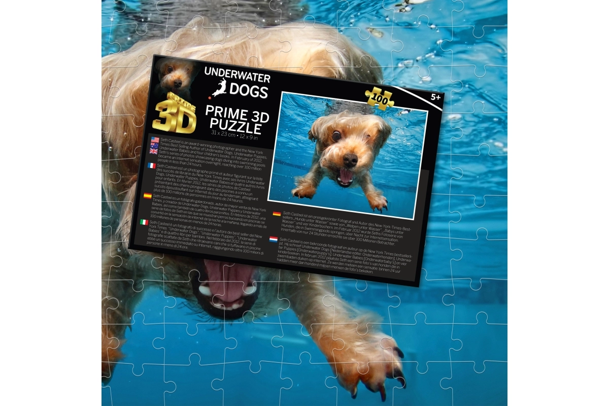 Divertente puzzle 3D con il motivo di un adorabile cane sott’acqua che piacerà a piccoli e grandi appassionati di puzzle. Grazie al rilievo lenticolare 3D l’immagine prende letteralmente vita, rendendo il montaggio divertente e coinvolgente. Contiene 100 pezzi, l’immagine finita misura 31 × 23 cm ed è ideale per bambini dai 5 anni.