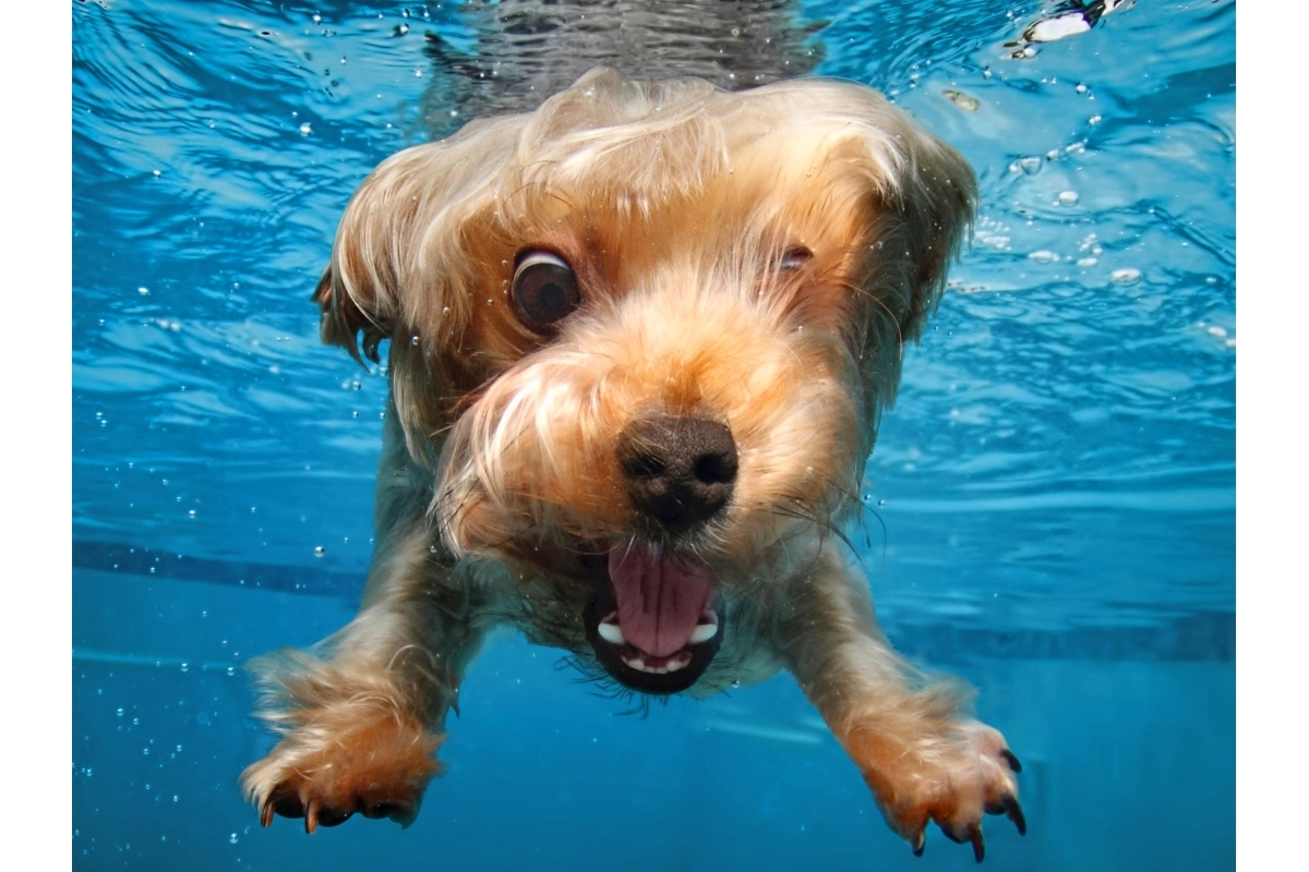 La stampa lenticolare crea un’impressionante profondità e senso di movimento: il cane sott’acqua sembra saltare fuori dall’immagine.