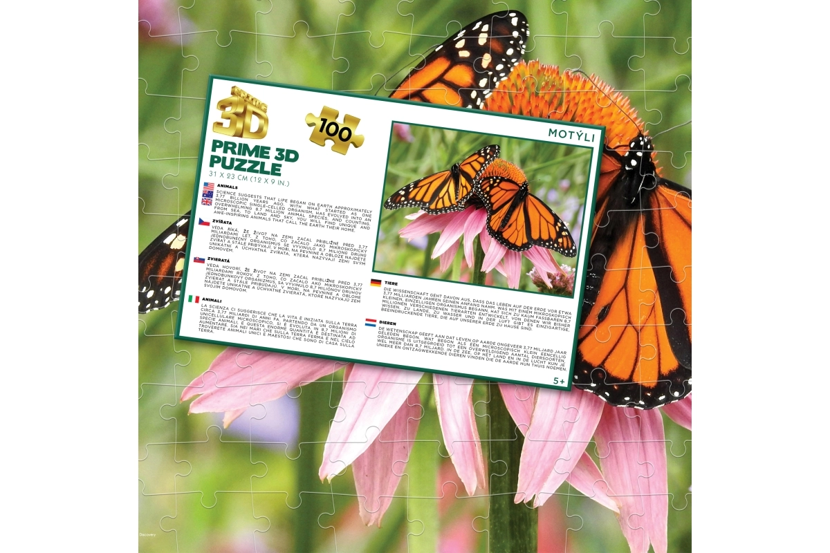 Scopri la magia del montaggio tridimensionale con questo puzzle 3D a tema farfalle. La confezione contiene 100 pezzi e, una volta completato, crea una immagine 3D lenticolare delle dimensioni di 31 × 23 cm. Un divertimento ideale per bambini a partire dai 5 anni, che sviluppa pazienza, motricità fine e percezione visiva.
