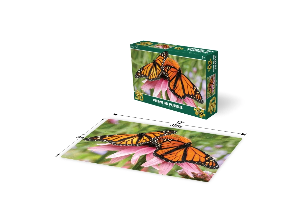 Questo puzzle 3D con splendide farfalle monarca offre un coinvolgente effetto visivo grazie alla tecnologia lenticolare, che crea un realistico senso di profondità in movimento. Con 100 pezzi è perfetto per principianti e appassionati di livello intermedio, offrendo una sfida piacevole e divertente.