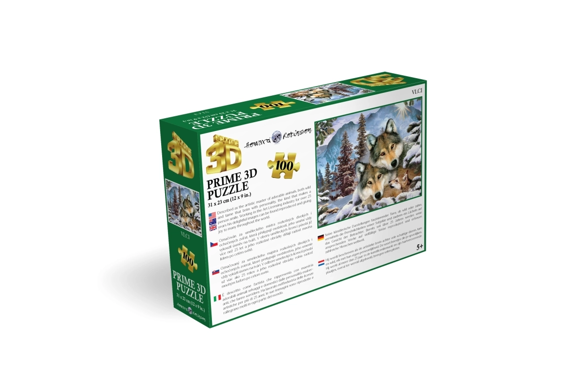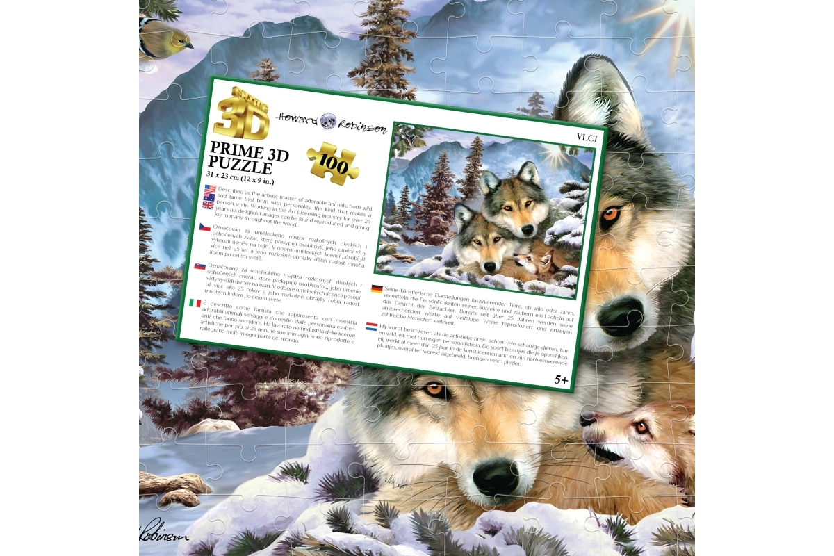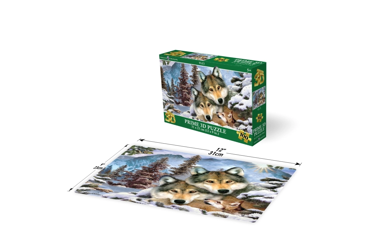 Scopri un divertimento per tutta la famiglia con questo puzzle 3D a tema lupi. Contiene 100 pezzi e, una volta completato, crea una immagine 3D lenticolare delle dimensioni di 31 × 23 cm. Ideale come regalo per bambini dai 5 anni e per gli amanti della natura.