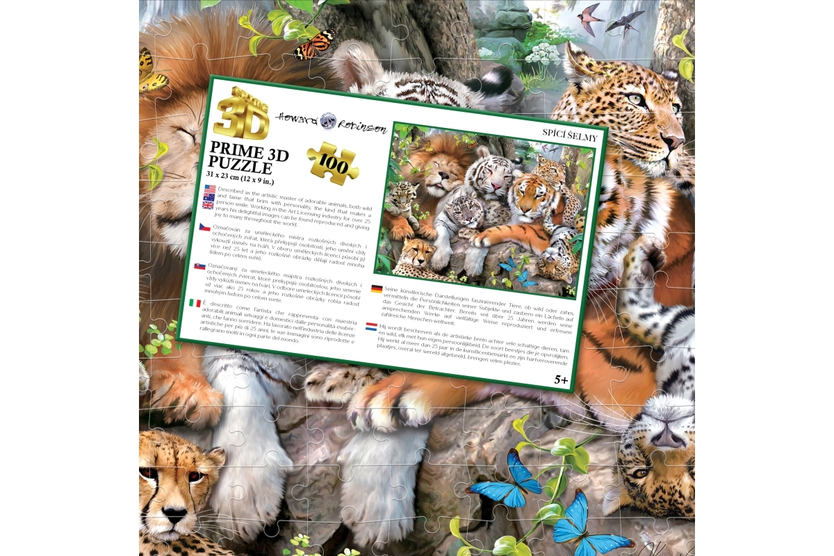 Entra nel mondo della natura selvaggia con l’affascinante motivo dei felini dormienti. Questo puzzle 3D offre un’ottima combinazione di divertimento e apprendimento: i bambini allenano la percezione spaziale, la concentrazione e la coordinazione occhio–mano. Grazie ai 100 pezzi tagliati con precisione, l’assemblaggio è una sfida piacevole per piccoli costruttori principianti e più esperti.
