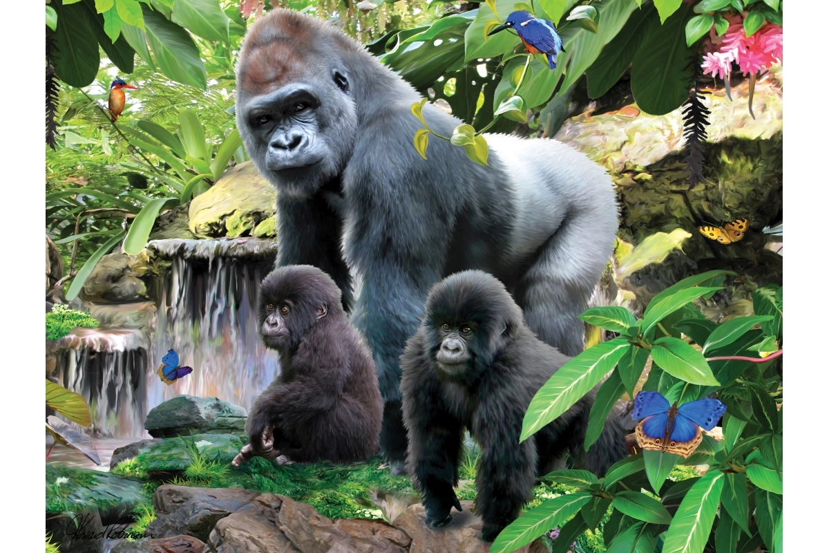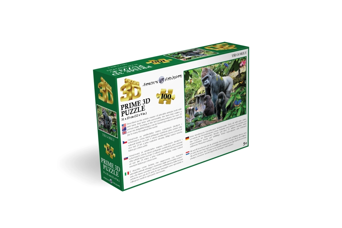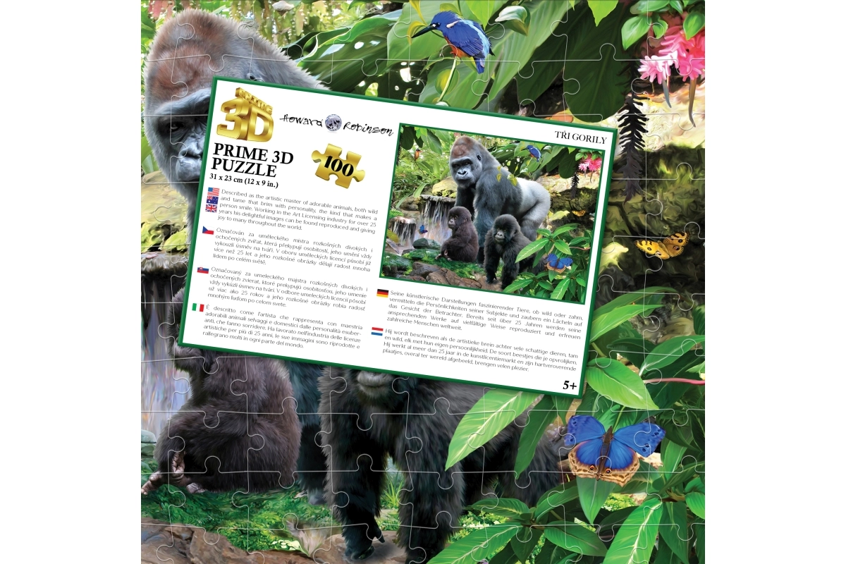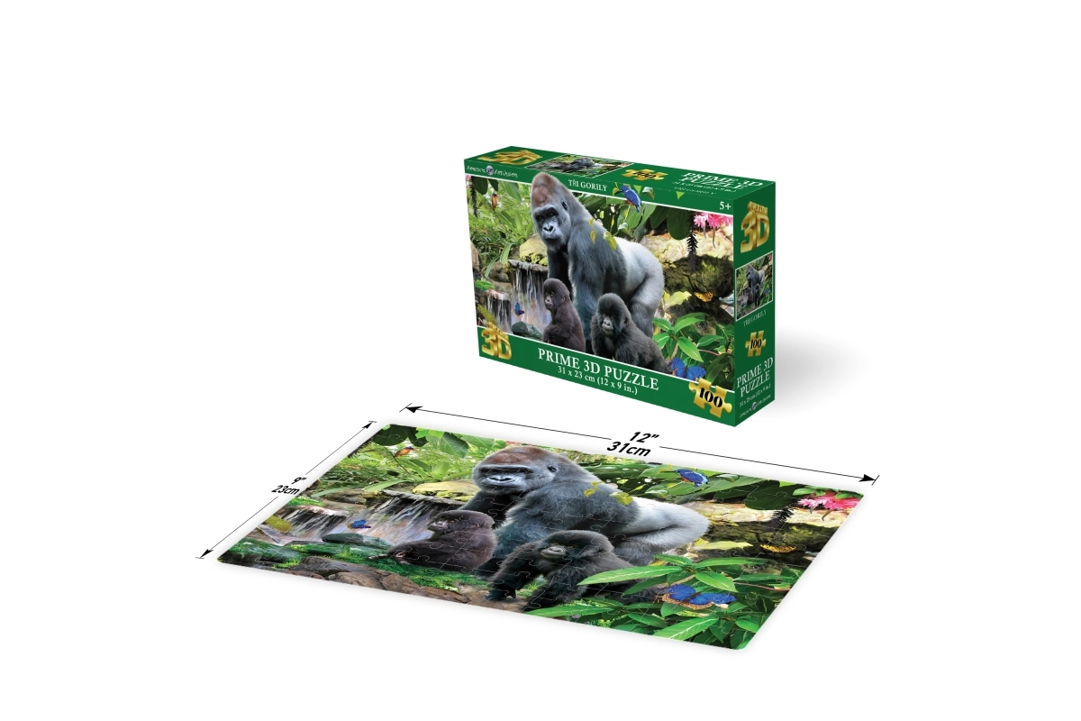 Scopri il mondo della natura selvaggia con l'affascinante puzzle 3D con una famiglia di gorilla. Grazie all'effetto lenticolare, l'immagine emerge dalla superficie e offre un'esperienza visiva coinvolgente che piacerà a bambini e adulti. Il formato finito di 31 × 23 cm è perfetto anche come decorazione per la cameretta.
