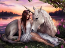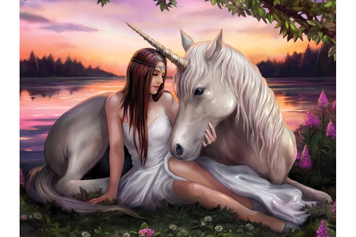 - Motivo magico di ragazza e unicorno per il piacere di comporre.