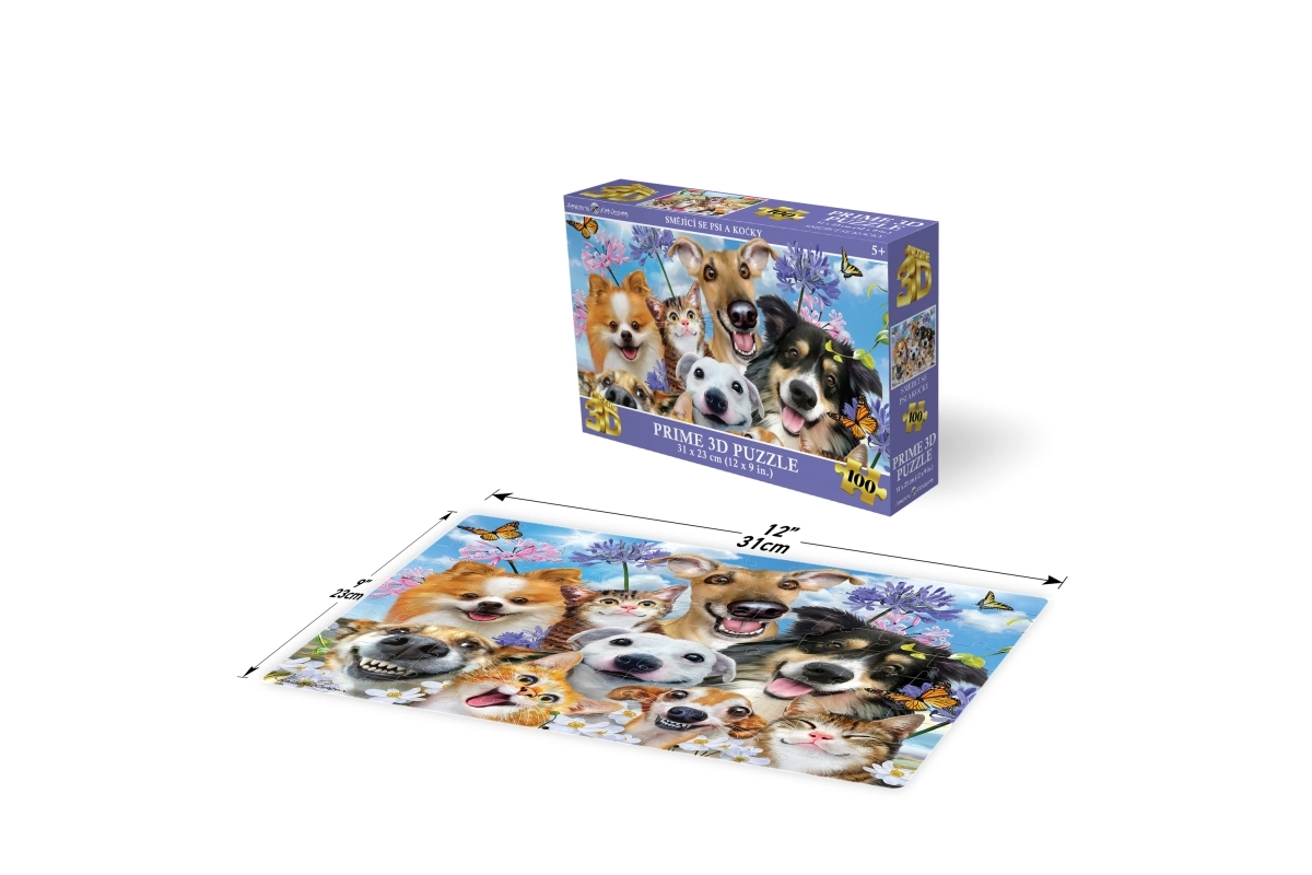 Goditi un divertimento per tutta la famiglia con il puzzle 3D con cani e gatti sorridenti. Il puzzle da 100 pezzi offre un bellissimo effetto 3D, le dimensioni dell'immagine assemblata 31 × 23 cm ed è ideale per bambini dai 5 anni.