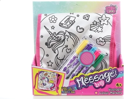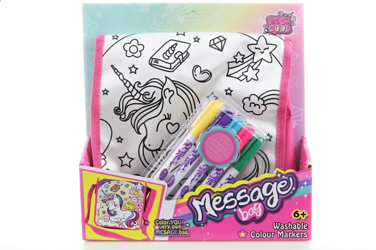 Creativa borsetta da colorare con un tenero motivo unicorno che farà felice ogni piccolo bambino creativo. Include una tracolla rosa regolabile e un set di 5 colori per colorare subito. La borsetta ha una pratica chiusura a strappo ed è ideale per piccoli oggetti e per i viaggi. Stimola la creatività, facile da usare e divertimento per bambini 3+.