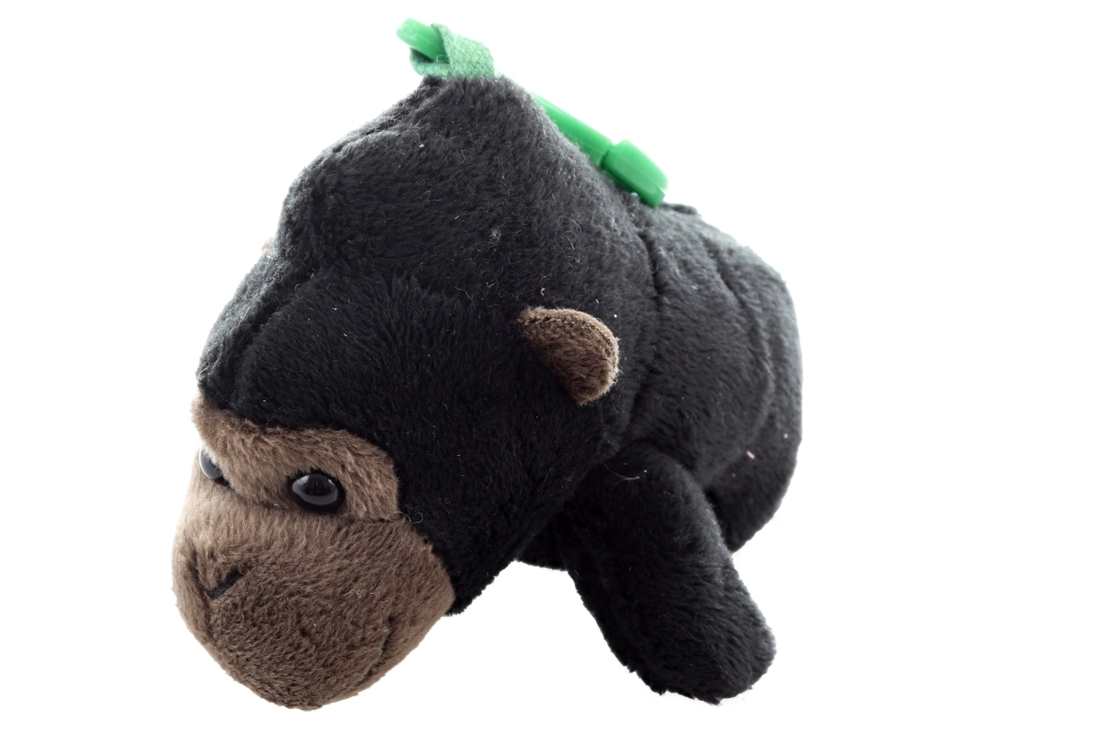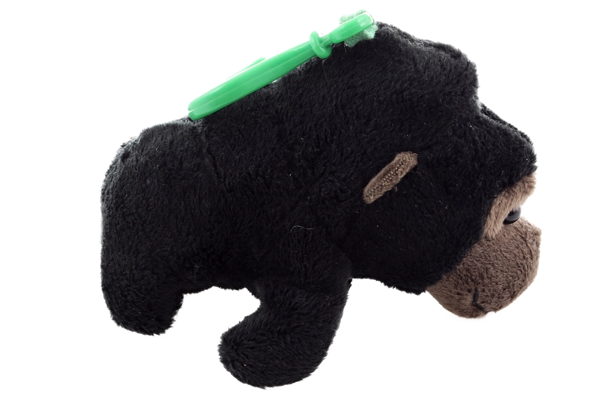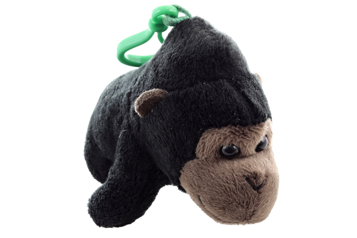 Questa stilosa gorilla in peluche è un ottimo accessorio per l’uso quotidiano. La soffice pelliccia nera con viso marrone e occhi in plastica evidenti è tenera e invita ad accarezzarla. La clip verde consente un fissaggio rapido e saldo a chiavi, cartella o cerniera dello zaino.