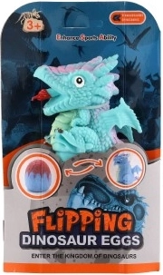Basta un ribaltamento e il dinosauro si trasforma in una figura mobile o rimane comodamente nell'uovo!