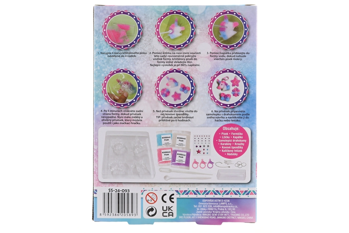 Questo set divertente e semplice permette ai bambini di creare ciondoli originali secondo la propria fantasia. Grazie alla procedura facile con aggiunta d’acqua e al ricco assortimento di accessori, nasceranno decorazioni di cristallo uniche per chiavi, zaino o come regalo.