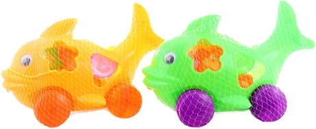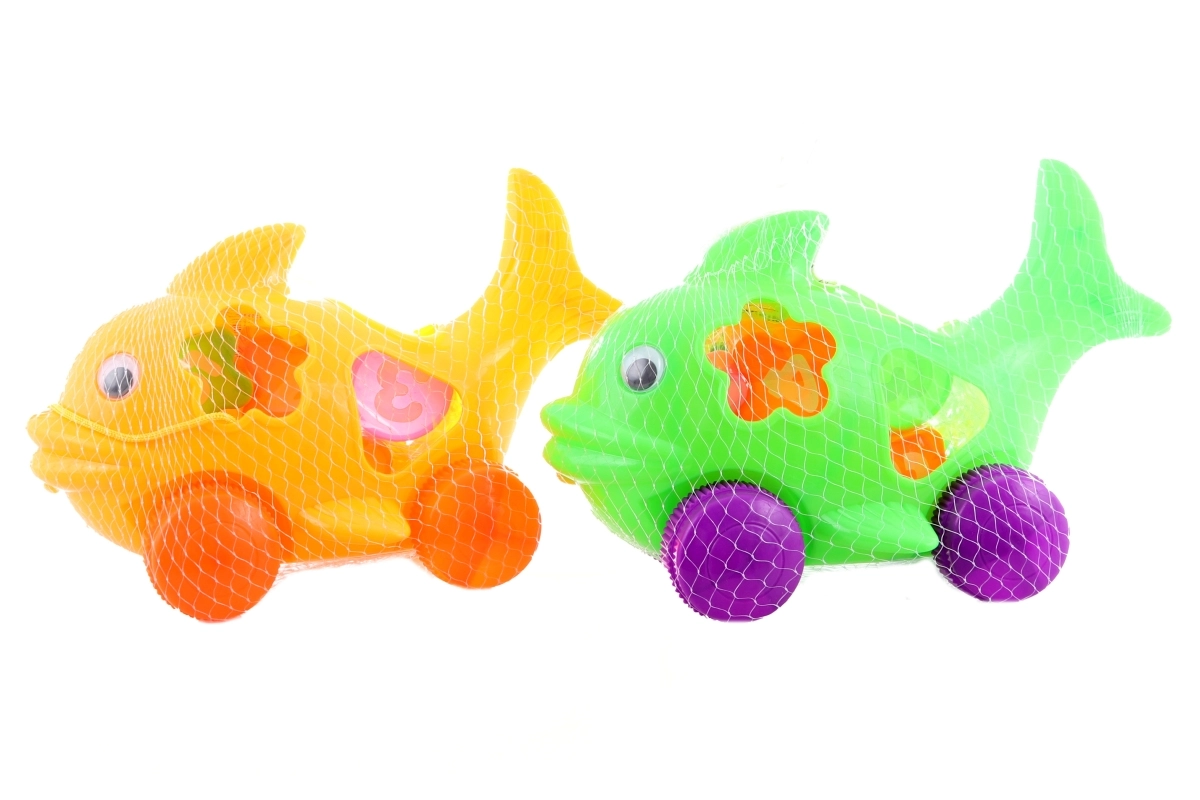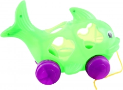 Divertente pesciolino da inserimento su ruote con ruote libere che unisce movimento e apprendimento. Il bambino si divertirà a trainarlo con il cordino e allo stesso tempo allenerà il riconoscimento delle forme grazie a 5 blocchetti colorati. Il giocattolo in plastica resistente è leggero, sicuro e confezionato in rete. Dimensioni 25 × 17 × 11,5 cm. Il colore viene fornito in base alla disponibilità di magazzino. Ideale per lo sviluppo della motricità fine, della coordinazione e della logica. Inserimento delle forme, giocattolo da traino con ruote libere, 5 pezzi, plastica resistente.