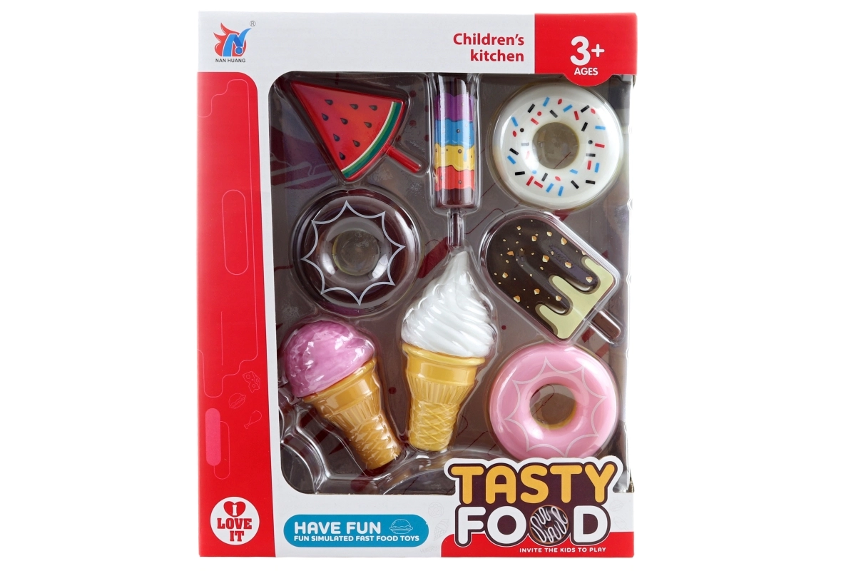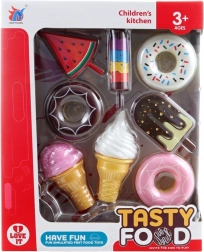 Un divertente set di dolci per piccoli chef farà felici tutti i bambini dai 3 anni in su. Contiene varie golosità in plastica per un gioco creativo di cucina e negozio. Plastica sicura, design leggero e resistente e confezione compatta garantiscono facilità di riporre e trasportare.