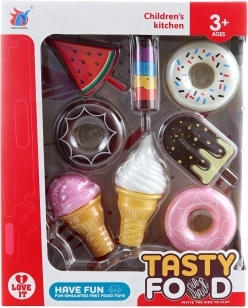 Questo set di dolcetti è ideale per cucine giocattolo, sale giochi e giochi di ruolo da negozio. Grazie alla plastica leggera e robusta, i bambini possono sviluppare in sicurezza fantasia, motricità fine e abilità sociali durante il gioco condiviso.