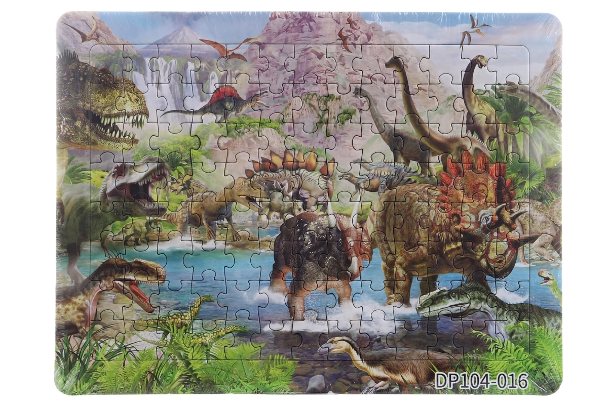 Scopri il divertimento per i piccoli esploratori con questi puzzle a tema dinosauri. Il set offre 104 pezzi in resistente cartone e una pratica base di 28,5 × 21,5 cm. Ideale per bambini da 3 anni per sviluppare la motricità fine e il pensiero logico.