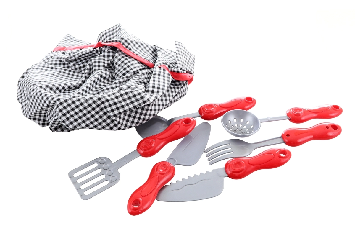 Accessori da cucina in plastica con manici ergonomici, progettati per le mani piccole e un gioco sicuro.