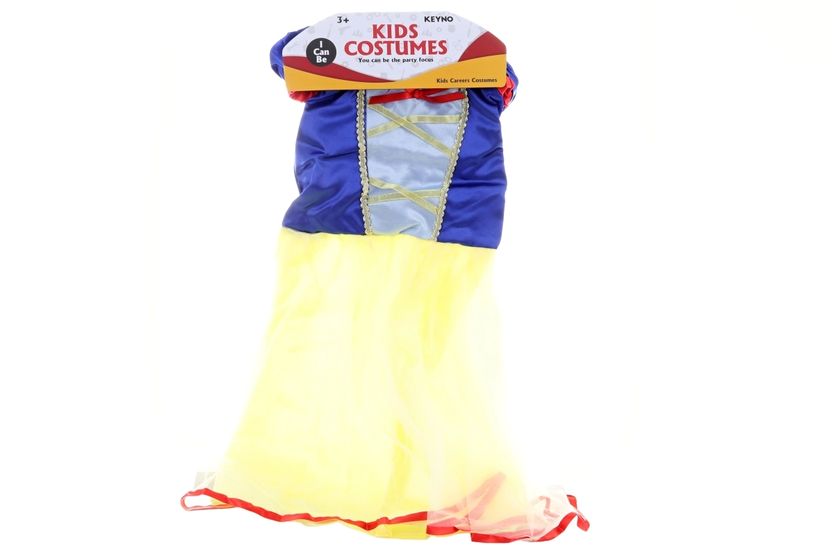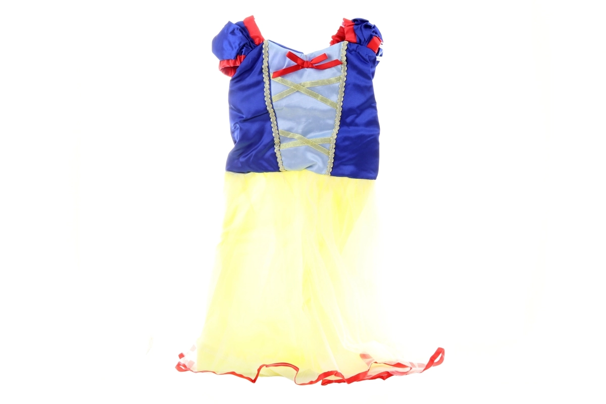 Trasformate la vostra bambina in una principessa delle fiabe! Questo abito in stile Biancaneve colpisce per il corpetto blu con allacciatura decorativa e la lunga gonna gialla con bordo rosso. Perfetto per carnevale, feste per bambini e giochi di ruolo a casa.
