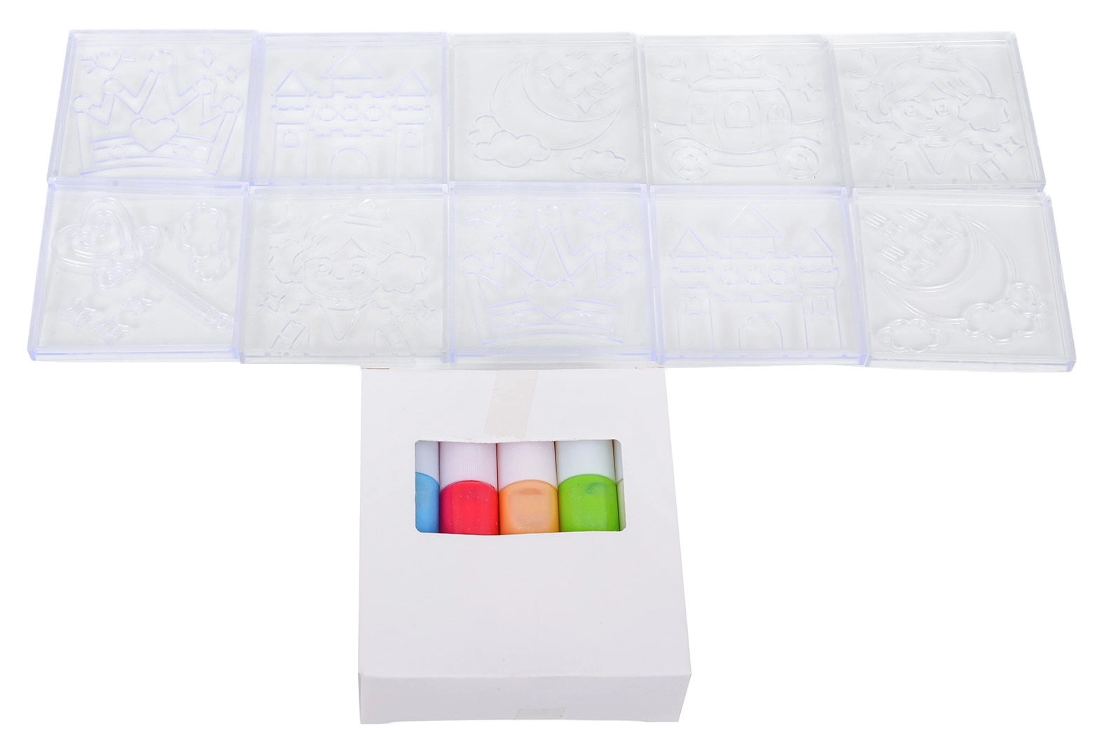 I pezzi da colorare e 10 pennarelli gel permettono ai bambini di decorare finestre, stemmi e ornamenti, dando alle costruzioni uno stile personale.