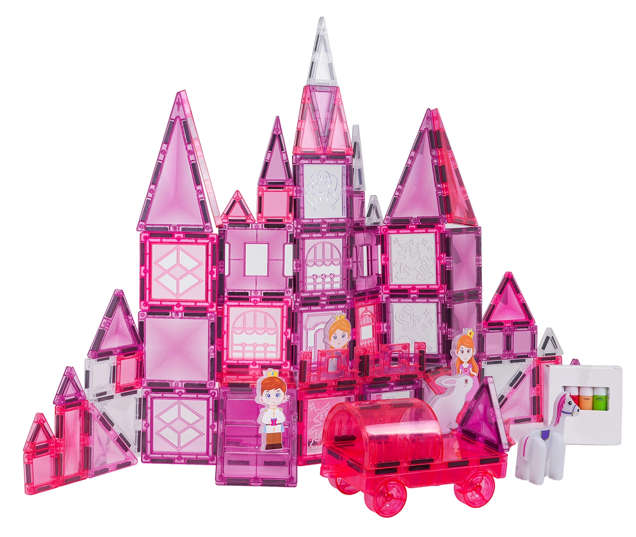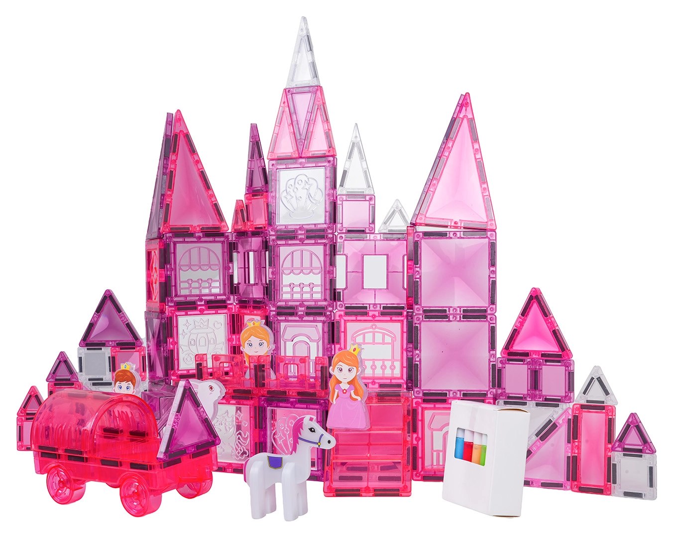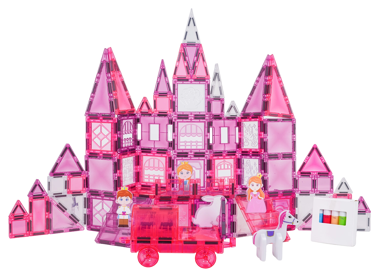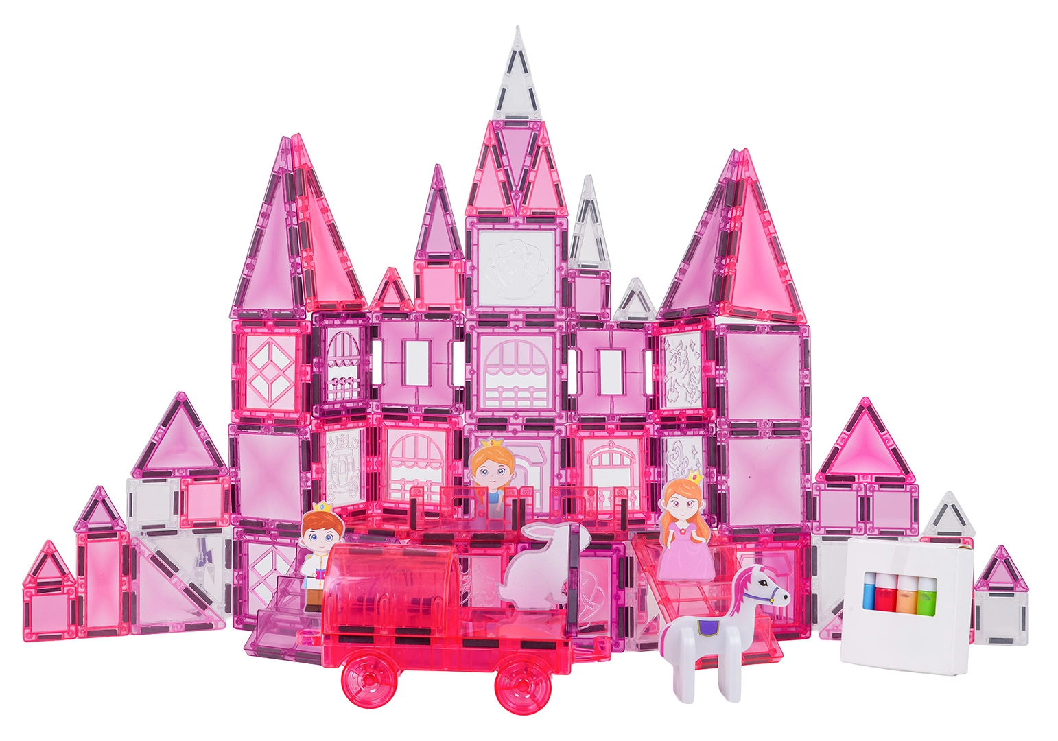 Magica costruzione magnetica per piccoli creatori dai 3 anni permette di costruire castelli rosa, carrozze e intere scenette con personaggi. Il set include 126 pezzi tra cui tessere magnetiche traslucide, carrello con ruote, personaggi e pezzi da colorare con pennarelli gel inclusi. Magneti al neodimio potenti garantiscono connessioni solide e strutture stabili che sviluppano creatività, pazienza e concentrazione.