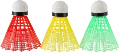 Volani da badminton in plastica colorata sono ideali per gli appassionati di questo popolare sport. Il set include tre volani leggeri e resistenti in diversi colori, facilmente distinguibili durante il gioco.