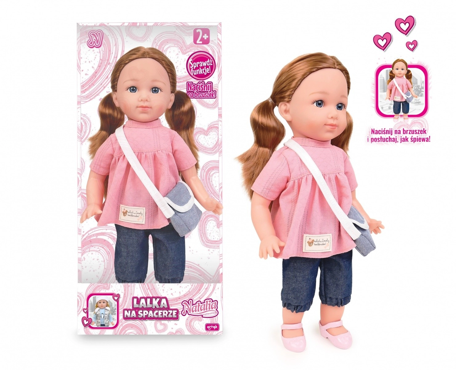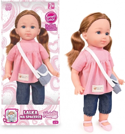 La bambola Natalia con tunica rosa e pantaloni alla moda offre ai bambini tanto divertimento e apprendimento. Premendo il pancino pronuncia frasi in polacco e canta due canzoni, favorendo la percezione uditiva e l’imitazione naturale degli adulti. La lavorazione di qualità, i tratti delicati del viso e gli arti mobili la rendono un’ottima compagna per ogni giorno.