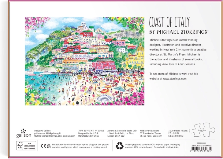 Goditi il relax con un puzzle di qualità da 1000 pezzi con il motivo della costa italiana del brand GALISON. Inclusa una guida per un assemblaggio più semplice e un risultato preciso. Le dimensioni dell’immagine completata sono ca. 68,6 × 50,8 cm. Ideale per gli amanti dei viaggi, dell’arte e dei momenti tranquilli dedicati al puzzle. 1000 pezzi, splendido motivo italiano, guida inclusa, formato ampio una volta composto.