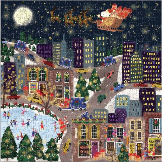 I puzzle quadrati GALISON con effetto metallico e soggetto Cittadina dei Regali offrono una combinazione di stampa di qualità, tasselli tagliati con precisione e un attraente finish lucente. Il formato quadrato risalta perfettamente sia a parete sia su una mensola e conquista sia i principianti sia i puzzlisti esperti.