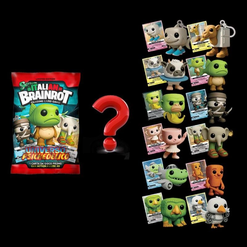 Portachiavi alla moda per i fan del fenomeno virale Brainrot, accompagnato da una carta speciale da collezione. Accessorio ideale per chiavi, zaino o borsa, che colpisce con i suoi visual assurdi e richiama personaggi iconici come Tralalero Tralala, Bombardillo Crocodillo e Ballerina Capuccina.