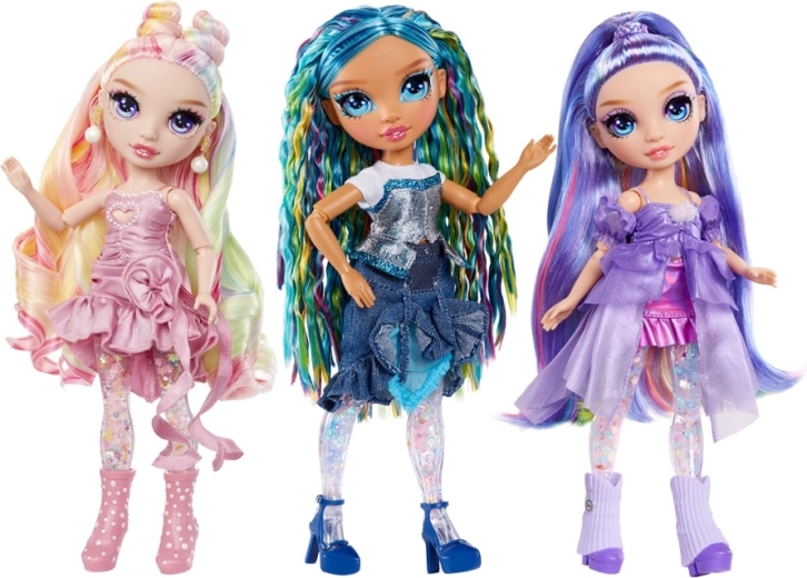 Inclusi anche un dolce animaletto magico con ali e corno, un pettine e un outfit completo. I bambini possono collezionare i personaggi di questa serie – Iris (Arcobaleno), Bella (Rosa), Skyler (Blu) e Violet (Viola) – e lasciarsi ispirare dai nuovi episodi della serie Rainbow High su YouTube o Netflix.