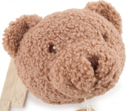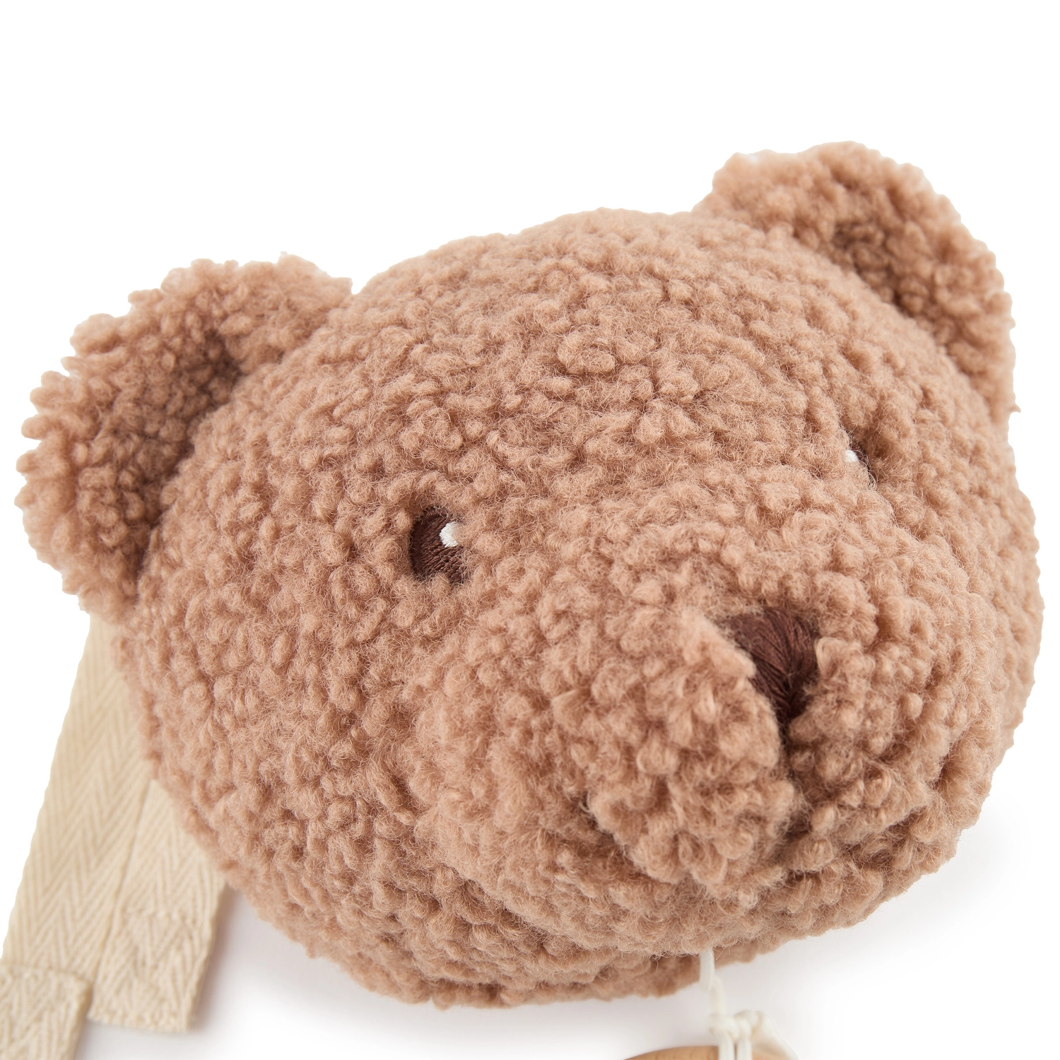 Asola in tessuto per un aggancio rapido a lettino o passeggino e anello in legno liscio per azionare facilmente il carillon.