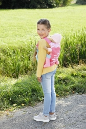 La struttura flessibile consente di portare la bambola come uno zainetto sulla schiena oppure comodamente davanti, così che il bambino possa vederla bene.