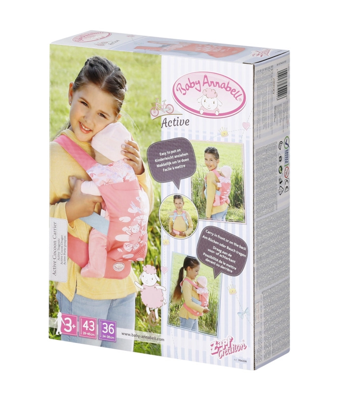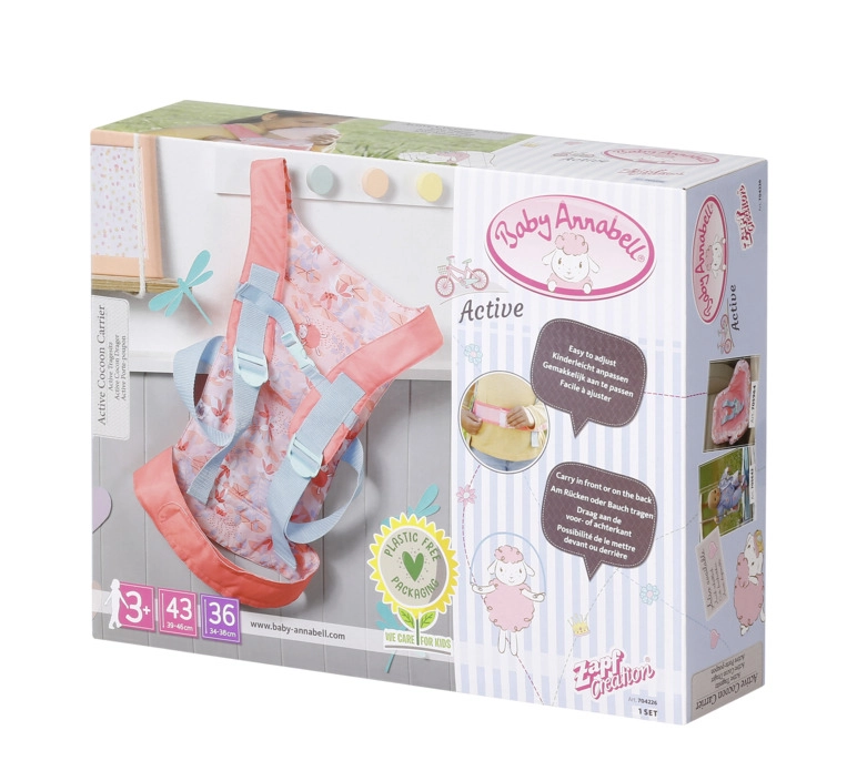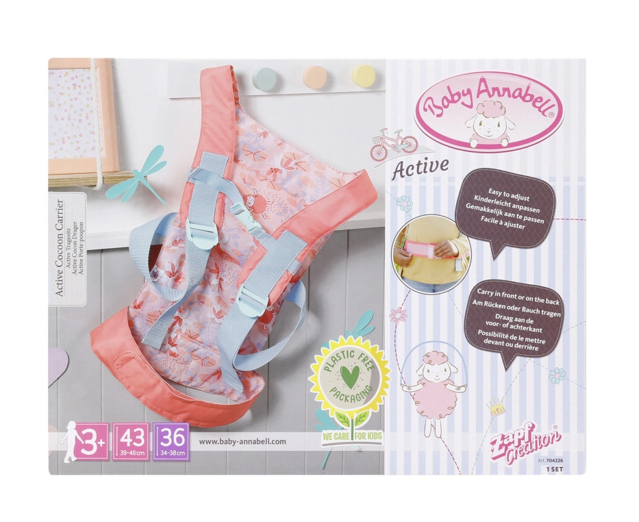 Il pratico marsupio per bambole BABY ANNABELL è perfetto per i piccoli premurosi che desiderano avere sempre con sé la propria bambola. Grazie alle opzioni di trasporto davanti e sulla schiena e alle due posizioni frontali (rivolta in avanti o verso il bambino), i bambini possono godersi un gioco comodo e sicuro in ogni gita.