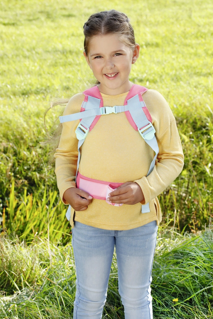Le morbide cinghie imbottite, la fibbia pettorale e la cintura lombare offrono stabilità, mentre le fibbie regolabili si adattano facilmente alla corporatura del bambino. Delicati motivi floreali e del parco con libellule e ninfee donano all’accessorio un aspetto incantevole che stimola l’immaginazione.
