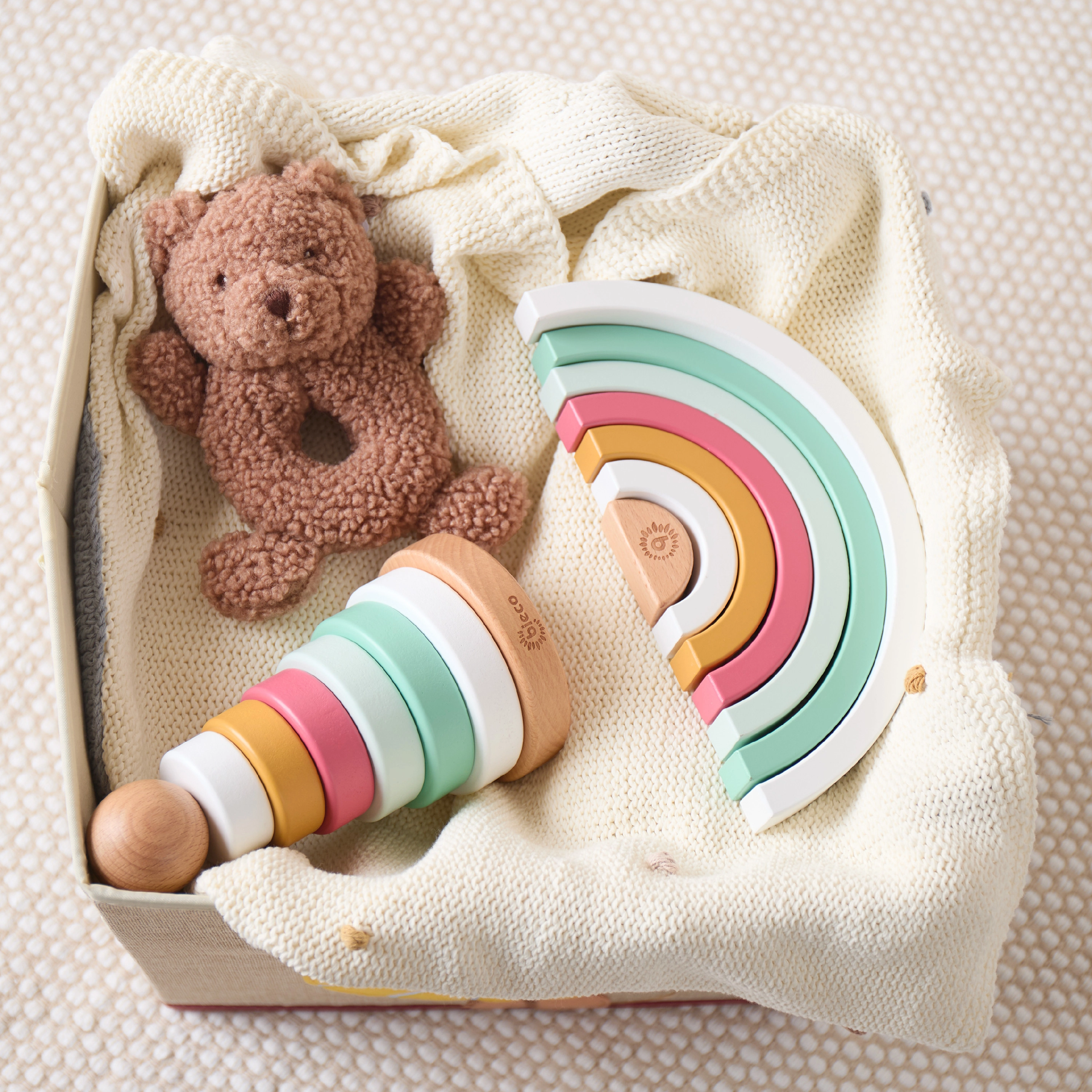 Scopri l’arcobaleno in legno impilabile Bieco nella variante Berry – un gioco che sviluppa la motricità fine, la coordinazione occhio–mano e il riconoscimento dei colori. Sette archi facili da afferrare in legno FSC favoriscono il gioco libero, la fantasia e la creatività dei più piccoli a partire da 12 mesi.