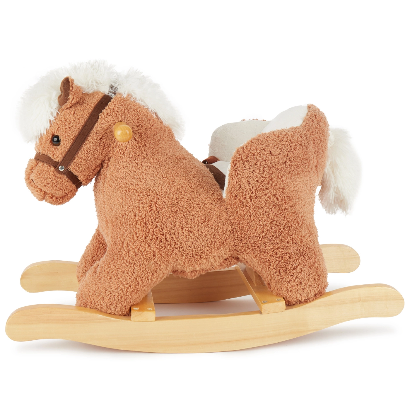 Il tenero cavallino a dondolo Bieco per bambini dai 9 mesi offre una morbida finitura in peluche, una solida struttura in legno e un comodo sedile imbottito con cintura di sicurezza. Favorisce lo sviluppo della motricità e dell’equilibrio e garantisce un divertimento sicuro grazie alla bassa altezza della seduta e alla protezione antiribaltamento.