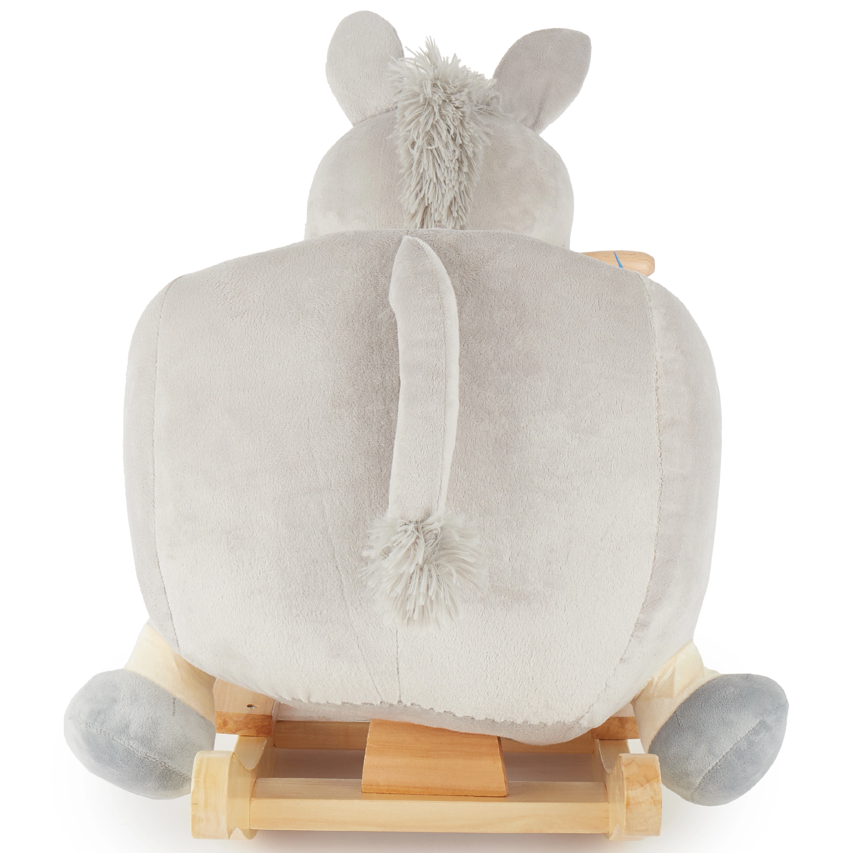 Legno massiccio, pattini curvi e supporto laterale assicurano un dondolio fluido e una stabilità affidabile anche durante il gioco più vivace.