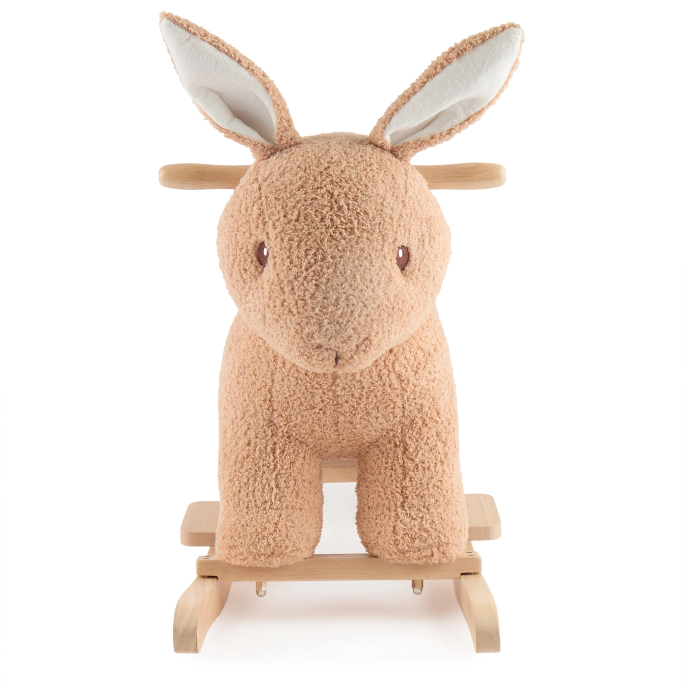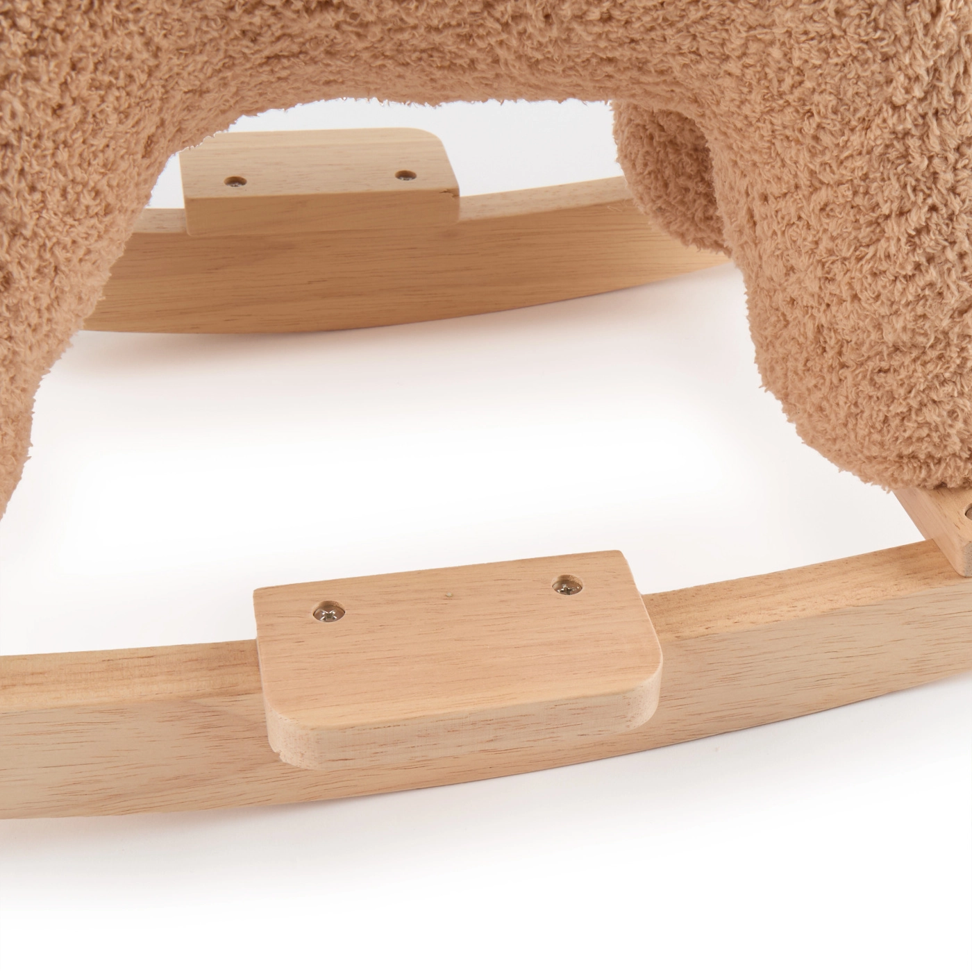 La base in legno resistente, con pattini dolcemente arrotondati e protezione antiribaltamento integrata, garantisce un dondolio sicuro e fluido.