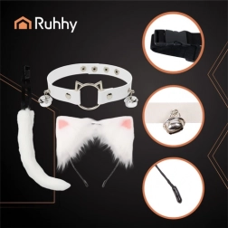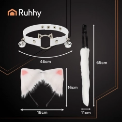 Esprimi il tuo umore e il tuo stile: con il set bianco RUHHY ti trasformi in un attimo in una misteriosa gatta, una volpe affascinante o un lupo selvaggio. I dettagli in morbida pelliccia sintetica hanno un grande impatto visivo, mentre la struttura leggera garantisce comfort per tutta la serata. Grazie al filo modellabile nella coda, puoi impostarne facilmente la curva proprio come preferisci.
