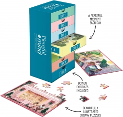 Il set JUMBO Pieceful Mind offre 6 puzzle separati da 54 pezzi, progettati per calmare la mente e ispirare a un riposo regolare. Ogni mini puzzle ha dimensioni compatte, perfette per brevi momenti quotidiani di tranquillità.
