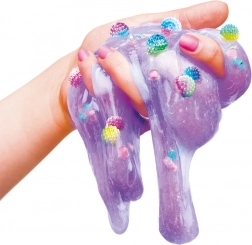 - 6 bustine di slime colorati, 4 tipi di decorazioni, 3× vasetto, spatola per miscelare