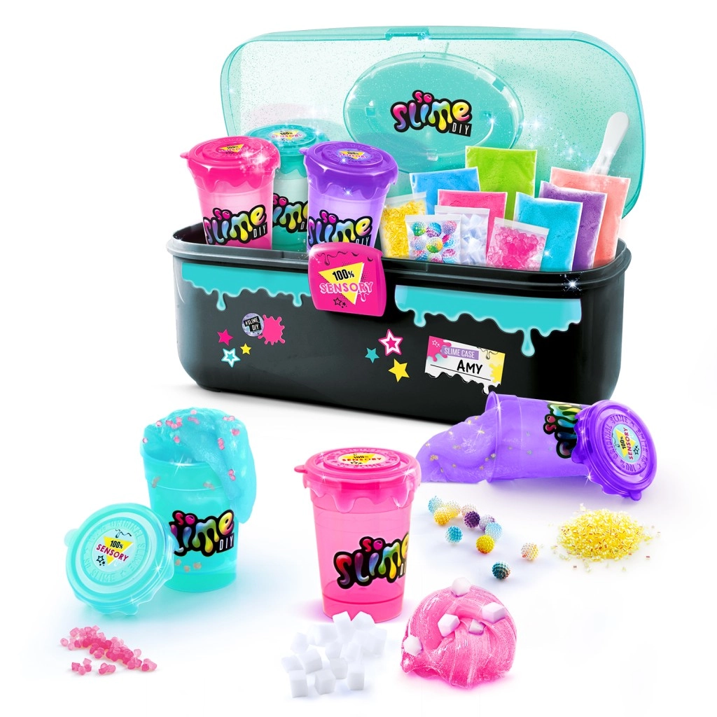 La valigetta compatta SO SLIME contiene tutto il necessario per realizzare subito slime colorati e scintillanti. In pochi semplici passaggi, i bambini creano combinazioni originali di colori e texture e possono decorarle con gli accessori inclusi.