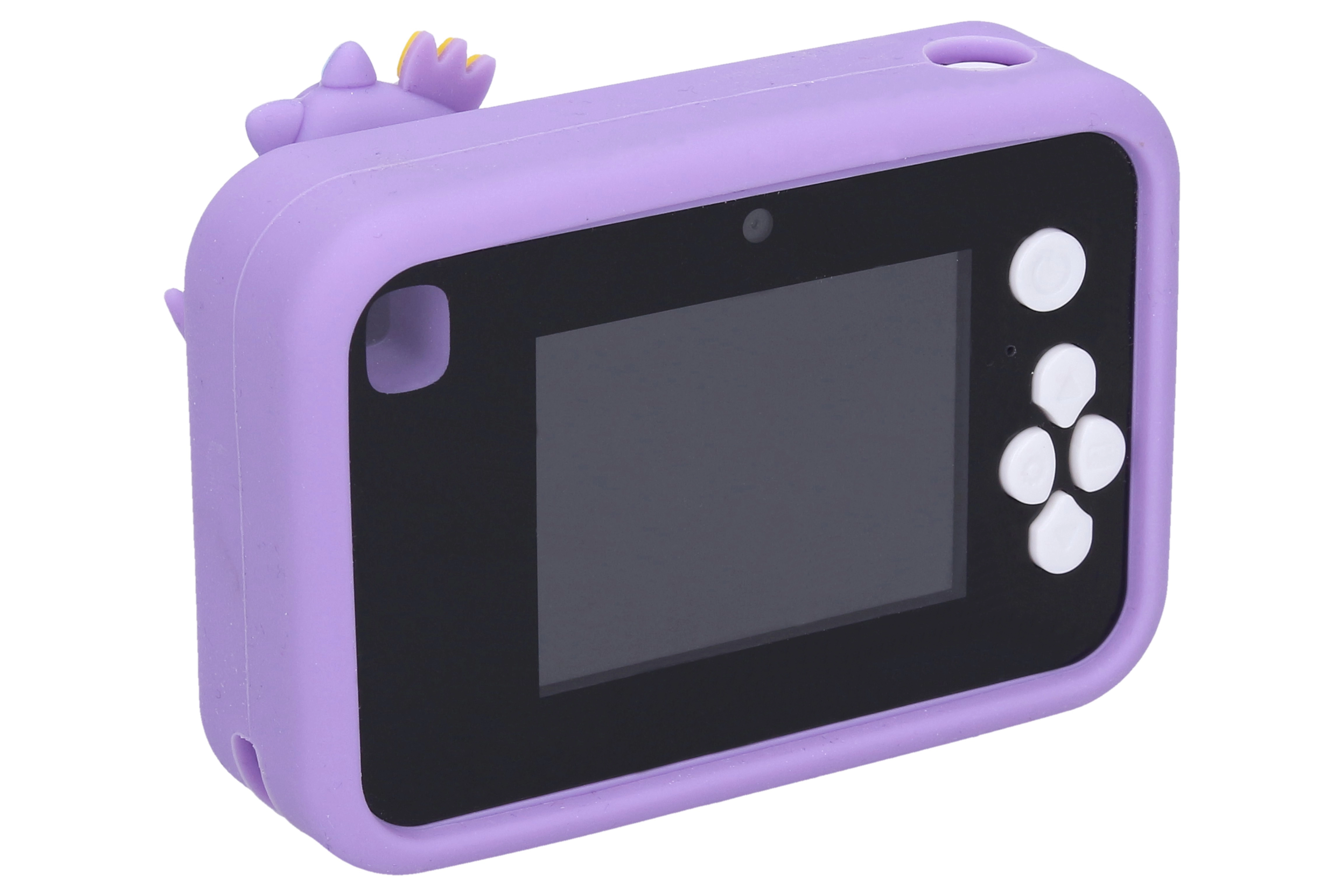 Questa fotocamera per bambini facile da usare è progettata per i piccoli fotografi: ha una custodia in silicone a tema dinosauro resistente, dimensioni compatte 10 × 4,5 × 7 cm e forme antiscivolo per una presa sicura. Grazie alla risoluzione da 48 MP realizza scatti nitidi e video Full HD (1920 × 1080) ricchi di dettagli. Non manca il display LCD da 2,4" per una visione e impostazione intuitive.