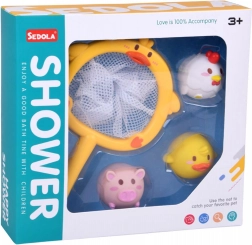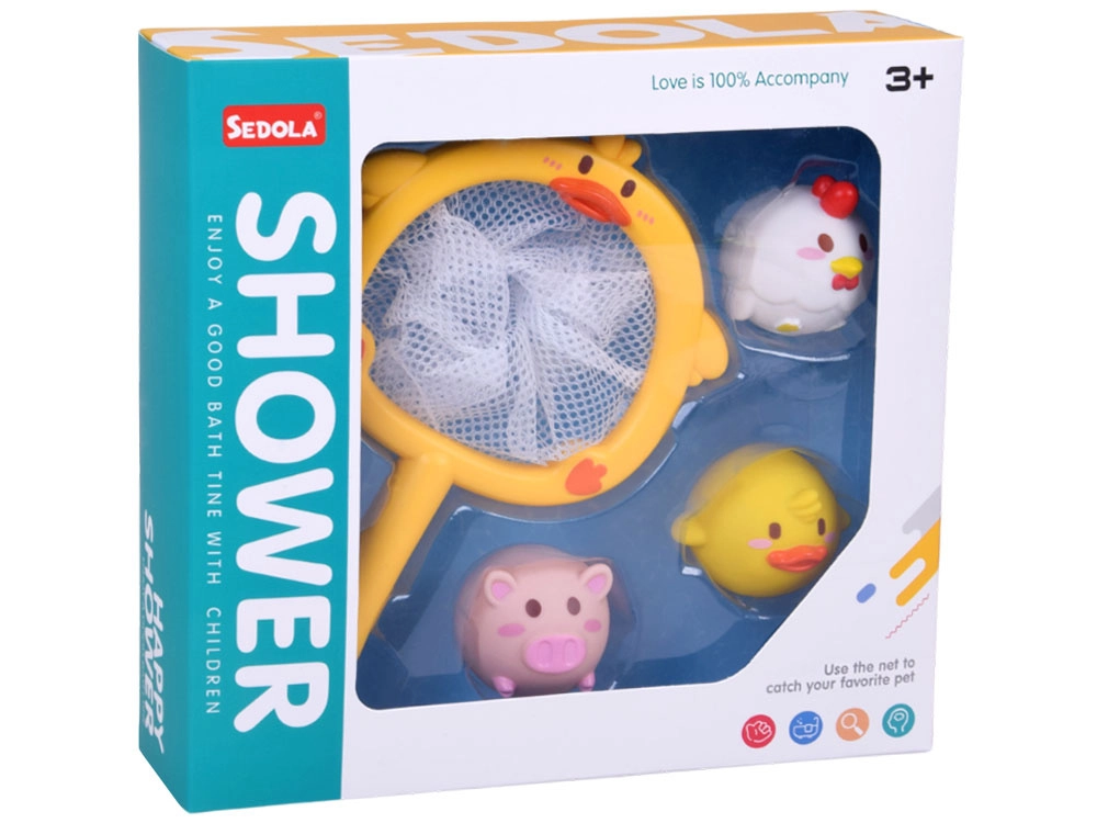 Questo adorabile set da bagno trasforma ogni bagnetto in un gioco divertente. Con il retino a forma di papera i bambini possono pescare gli animaletti galleggianti e allenare la motricità fine, la coordinazione occhio–mano e la pazienza. La ventosa sul manico permette di fissare il retino a superfici lisce della vasca o delle piastrelle, così i giocattoli asciugano facilmente dopo il bagno e restano ordinatamente riposti.