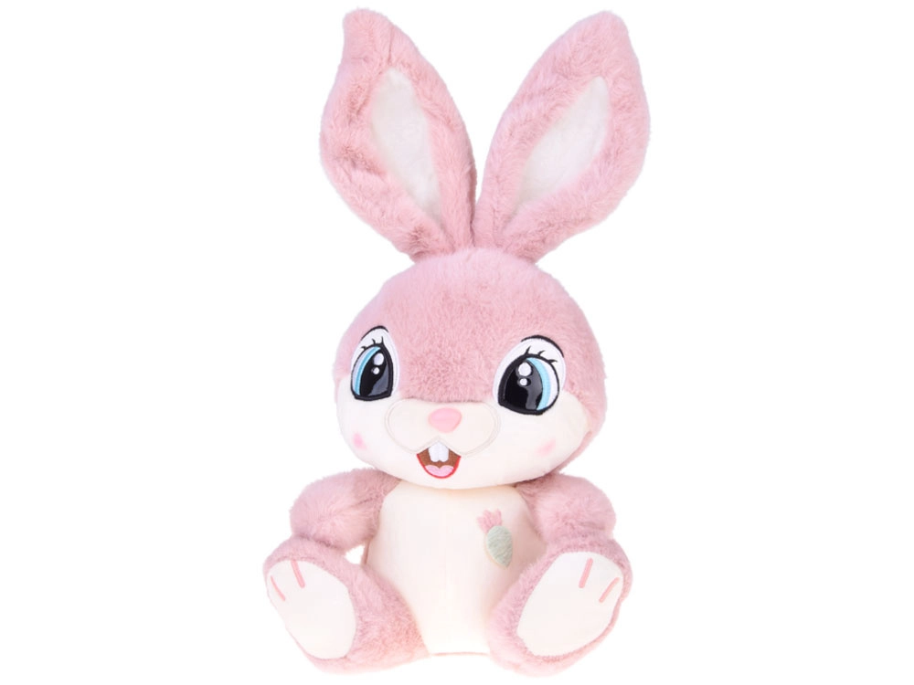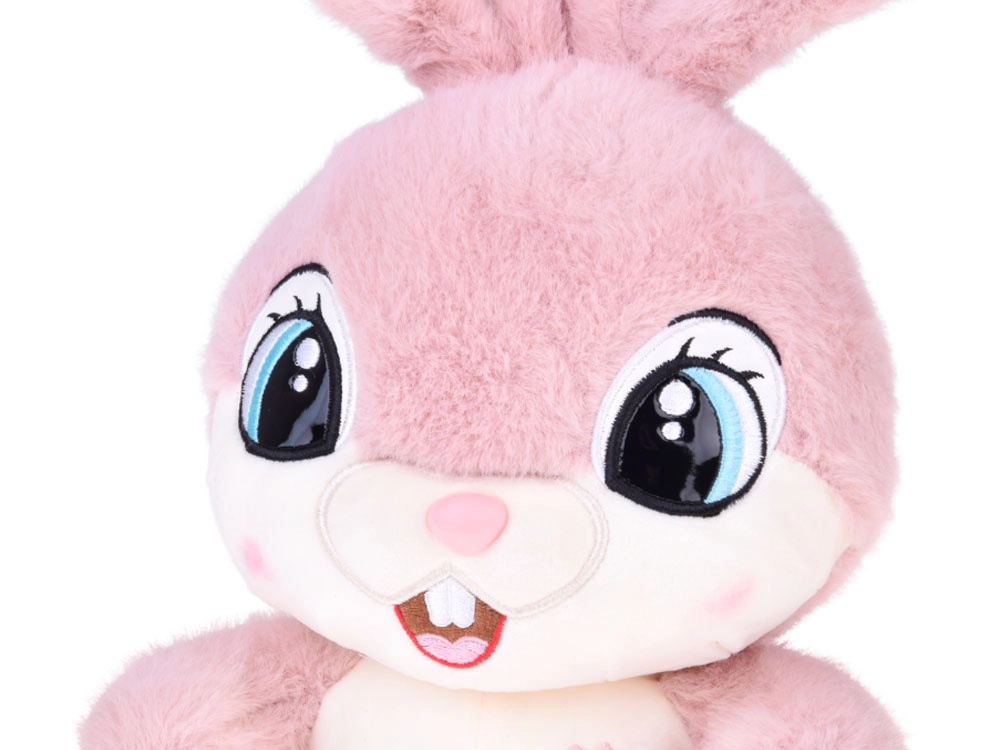 Il dolcissimo coniglietto di peluche Malinka conquisterà i bambini con il suo morbido pelo rosa, le lunghe orecchiette flessibili e il delicato pancino color crema. I sicuri dettagli ricamati, l’imbottitura soffice e il tenero sorriso con un piccolo dentino lo rendono il compagno ideale per dormire e giocare.