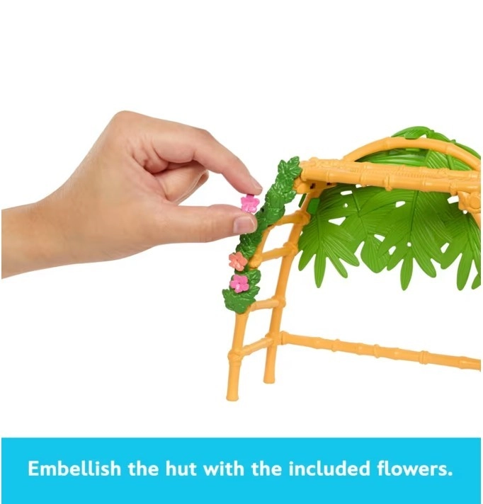 Questo set a tema porta ai bambini l’atmosfera di un’isola tropicale: un accogliente riparo di foglie, una ciotola e una vaschetta per il bagnetto di Pua, fiori decorativi e pratici accessori per la cura. I bambini possono decorare la capanna, fare il bagnetto a Pua e inventare storie con Simea, la sorella minore di Vaiana, ispirate al film Disney Moana 2.